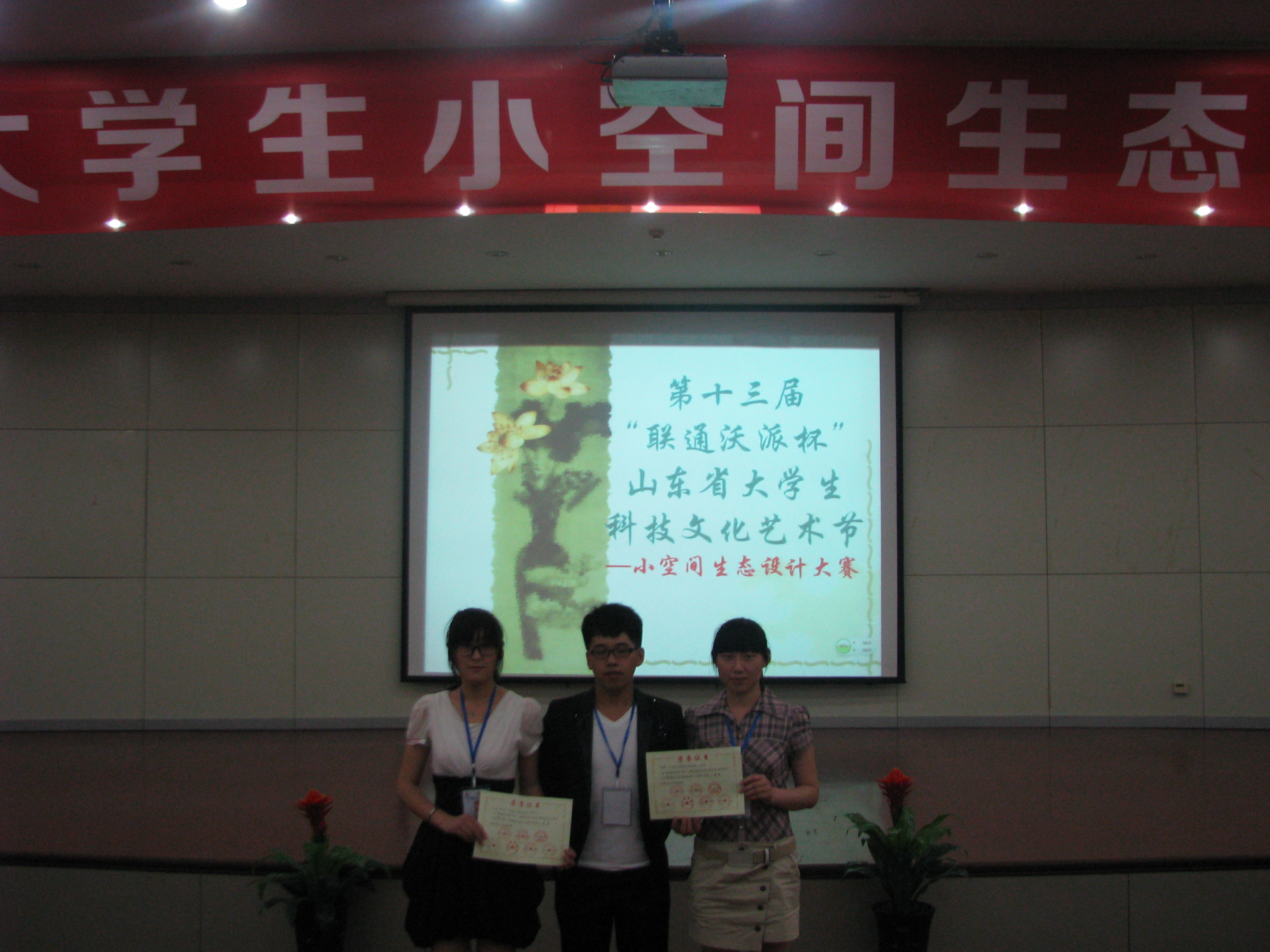 近日,由省委宣传部、省委高校工委、团省委、省教育厅等单位主办的第十三届“联通沃派杯”山东省大学生科技文化艺术节之小空间生态设计大赛在泰山职业技术学院举行。本次大赛吸引了全省17所高校的37组参赛队伍共同参与。在校团委的组织下,我院选派3组作品参加本次比赛。作品《绿梦家园》、《私家园林》获得三等奖,作品《翰墨林》获得优秀奖。