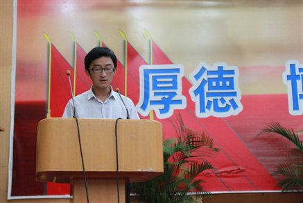 2013年度“大学时期,我心目中最好的老师”获得者、矿物加工系主任董风芝,2011年国家奖学金获得者、校第九届十佳大学生获得者杨铁江分别作为教师代表、毕业生代表发言。