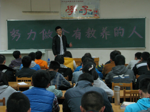 王国强首先以四句经典名言开场,随即引出主题。他从“教养”二字的基本信息出发,从古代和现代两个角度深刻独到解释“教养”二字,打破传统, 内涵丰富,令在场学生豁然开朗。随后,他逐步分析,通过对礼貌和教养的详细品味,道出“有教养的人”的核心:处世乐观,待人心胸宽广。最后他又从现实出发,屡举实例,以小见大,巧妙将主题升华——教养中的关怀更是一种有助于人际交往进入良性循环的对人、对己的大关怀。同学们听得津津有味,受益匪浅。接下来,王国强又从学长的角度,结合自身经验,和新生进行了“大学修养”的深度交流,以其幽默风趣的语言和我们共同分享生活中的点滴,尤其是他“梦启长岛暑期社会实践团”的历练更是引人入胜,同学们纷纷表示它日定当尝试。