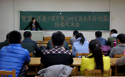 交流会上先由山西吕梁的武鹏杰进行心得阐述,他们组到当地煤矿企业走访,进行一些企业用人信息的统计;刘婷婷和她同学进行的是“走访校友”社会实践,她们利用母校资源实地考察、访问老师并和同学接触,最后总结,报告过程步骤分明;其余小分队也做出经验交流。