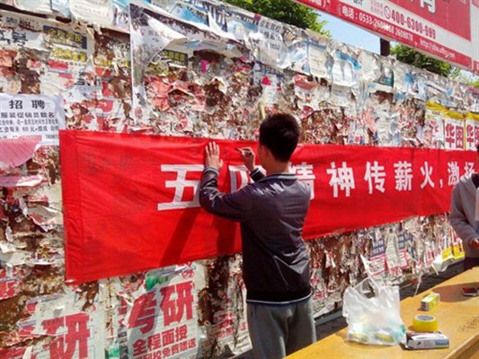 据悉,此次宣传活动持续至5月10日,活动期间社团成员将会就五四精神向周边学生进行详细解说。