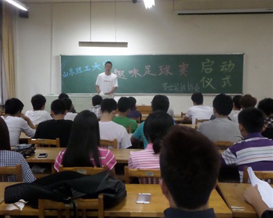 为丰富学生课余活动,提高身体素质,在校园内营造勇闯氛围,由齐云足球社举办的雪花·勇闯天涯校园巅峰挑战季-山理工趣味足球赛启动仪式于5月16日晚在12号教学楼412教室举行。会议介绍了此次比赛的各项流程、赛程设置、参赛规则及奖品设置,各参赛队队长和齐云足球社全体成员莅临启动仪式现场。