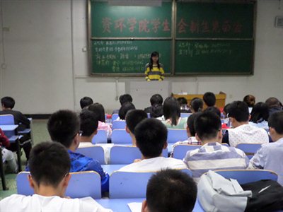 随后,各部门相关负责人依次上台演讲,向在场学生介绍所属部门的职责、工作安排及对干事的相关要求。他们谈到,学生会是展示自身本领、增长自我才干的大舞台,并鼓励在场学生积极了解学生会的工作性质,踊跃报名参选。