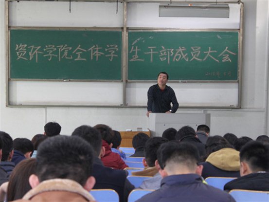首先,我院教学科负责人于文刚针对学生选课、补考、重修、转专业等问题进行安排部署。他指出,学生应该避免“弱意识”,对待自己面临学习问题及时和班委和教学科联系,同时,他强调,学生应该仔细阅读学院相关通知,全面了解情况。此后,张程作旧学期工作总结报告并作新学期工作部署。他表示,学期初,学生干部应该走访宿舍,认真配合年级导员对同学返校情况、思想变化等做好工作。同时,他指出,新学期学生干部应该认真负责做好综合测评、寒假作业工作,他建议各班级可以通过开展“实践归来话收获”“书写父母的一天”团日志活动的形式对同学进行实践、感恩教育。接下来,他表示,这学期将继续深入推广开展辅导员进公寓制度,并希望同学正确对待,使老师更好地与同学沟通交流了解。在提及试点“无人监考”制度时,他鼓励学生干部做好带头工作,争取新学期可有新的突破。