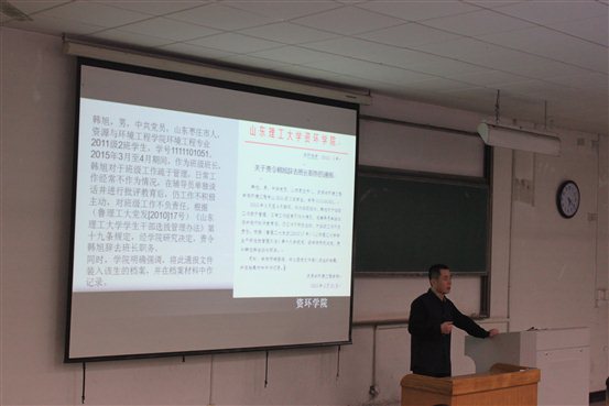 会议伊始,李栋祥首先列举韩旭、金廷等人不负责任,违反校规校纪等现象,用鲜活的案例揭示了“在其位,谋其政”的思想主张,并表明态度,对于学生干部违规违纪等情况,与广大学生一视同仁。一经查出,严肃处理,决不姑息。为广大学生干部上了生动形象的一节课,并由此引出同学们一系列的反思与自省。