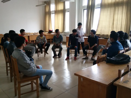会员活动总共准备了几个小游戏,分别由浅入深让参加活动的同学们相互认识,相互了解,其中第一个活动就是让大家各自介绍自己,然后由主持人指定某个同学让大家说出他的名字,说对多的组别获胜。第二个活动由不同组别的人员对面站立,双手相牵阻挠另一个组的人想办法从中穿越,从而锻炼大家的配合。第三个活动为书本接力赛,由被绑住双手的同学用肘部夹住书本放在另一个同学腋下两人跑到指定地点再由第三人用头将书顶回原处用时少的组别获胜。第四个活动类似击鼓传花的传统游戏,但是在传递物品的过程中夹杂了提问与回答的步骤,增加了活动的乐趣与难度,大家的问题时而搞笑时而令人惊愕现场一片欢声笑语的景象。最后一个活动为推手游戏,在一个小圆圈之中两人互相握手脚相互并拢并抵住对方的脚,把对方往圈外推,直至对方脚动或者出圈,最终留下人多的组获得胜利。