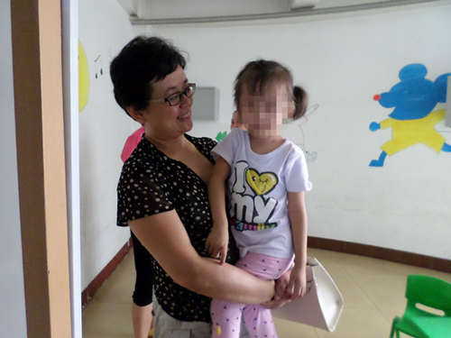 刚到百灵儿童康复中心,小朋友见到团队的到来一如既往地兴奋,直喊“哥哥”“姐姐”,朱阿丽和刘芹的加入瞬间壮大团队力量。老师们在康复师丁莉莉的带领下,依次参观了耳障治疗室、智障教学室、媒体教学室和综合理疗室。据丁莉莉介绍,耳障儿童需配带助听器,一年花费约20万,学校及政府会为负担不起费用的家庭免单;在见到多动症儿童时,孩子显得异常兴奋,和朱阿丽、刘芹拥抱,叫“阿姨”“妈妈”,不仅老师就连在旁边跟随的队友怜悯之情油然而生。最后参观的是理疗室,当时队友已在协助康复师照看孩子做理疗,朱阿丽、刘芹一边耐心听老师讲解,一边和孩子互动,一幕幕的场景让人感触颇深。
