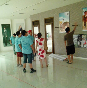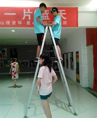 清晨,星心相印实践团冒着雨滴早早地来到爱心义卖的会场,因为场地是临时借的商场的闲置地,所以一切整理活动都需要我们自己动手准备。为规划场地,摆放各个特殊教育学校的手工艺品,团队小伙伴特意买的红色条绳来划分场地,几个人一起合作,工作细致,态度认真,体现出他们对此次活动的重视和对孩子们的关爱。为了让场地美观可以吸引更多的人,团队成员向商场的工作人员借来扶梯,即使有的伙伴恐高不敢上去。可当他们想到,是为了那群来自星星的孩子的时候,什么畏惧感都烟消云散,奋勇攀登,勇往直前。有在扶梯上往楼顶上贴装饰品的,有在下面帮忙扶着的,因为天公不作美,所以在室内比较闷热,但团队成员依然为此开心。时间慢慢地在雨滴中流走,会场布置的任务也逐渐接近尾声,忙碌一天的人是时候该休息了。