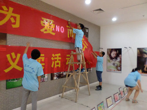 为此次义卖活动,星心相印团队成员在淄博百灵康复中心和启音特殊教育学校之间来回奔波,与学校老师不断沟通、与之协商卖的价格及售后的事宜,并且还要不断与麦田老师进行一切交接和准备活动。前期已将任务分配好,现场队友各司其职,争分夺秒,争取在最短的时间内将规划好的会场布置好,所有的付出即将得到认可,还有什么理由不努力。