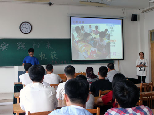 为深入落实校党委精神,不断推进院团支部创新争优工作的开展,2015年暑期我院顺利开展了大学生文化,科技,卫生,“三下乡”暑期社会实践活动。新学期伊始,为将社会实践中优秀团队的成果展示出来与其他团队分享,让各团队有更好的机会互相交流学习,9月17日下午,我院10支社会实践团于12号教学楼406教室参加了由实践部主办的“实践归来话收获”座谈会,团总支相关负责人张倩、王寿朋老师参加。