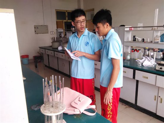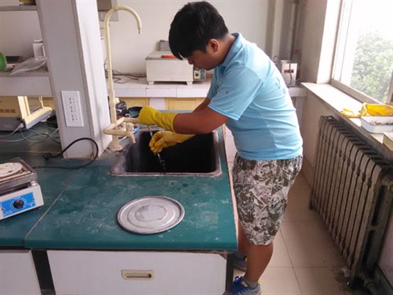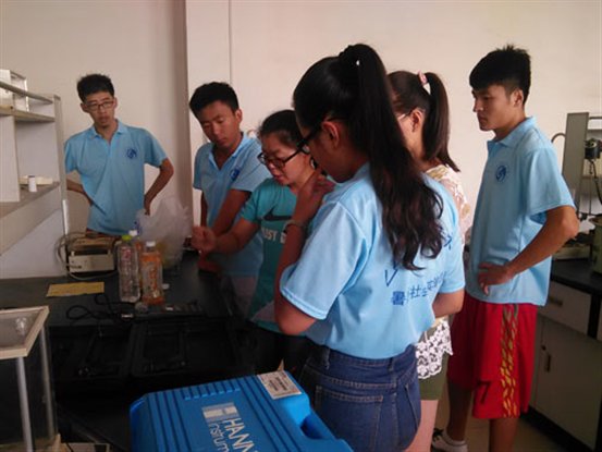 7月20日,实践团在5号实验楼四楼环境监测综合实验室进行居民生活用水水样水质监测工作;