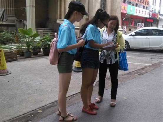 7月19日实践团在张店区展开城市居民用水调研问卷活动;