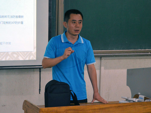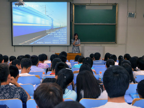 讲座于两个教室同时进行,李书记负责讲解规章制度而张倩老师负责对新生进行题为“如何读大学”的入学教育。