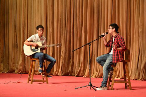 随着爵士舞 MJ街舞团激情四射的舞蹈,文艺演出正式开始,歌舞、朗诵、乐器等精彩的节目为观众呈现丰盛的视听盛宴。古老的传统又不失现代化的抖空竹,使在场观众眼前一亮;歌曲串烧《父亲》、《故乡》、《Take me to your heart》赢得台下阵阵掌声,李书记的《男儿当自强》更是带动现场气氛,赢得现场观众好评。满异域风情、热情洋溢的新疆舞,吉他的少年在那儿浅唱低吟,炫酷十足的舞蹈串烧《资环Style》,都为晚会现场掀起阵阵高潮!