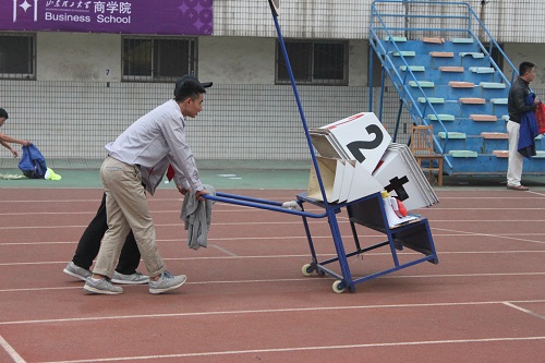 当我问他们累不时,他们平淡的话语让我有了些许感动。他们说:“累却快乐着,只要参与运动会的人员对运动会满意,即使再累都是值得的。”好一句‘累却快乐着’,朴实的话语诠释了他们的内心。