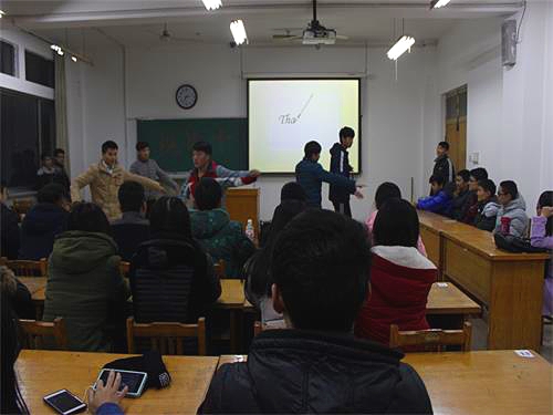 本次活动共分为三个环节。比赛开始,第一环节是记录挑战者留下的回忆,由上交的记录表查看挑战者的活动完成情况。第二个环节是说说挑战那些事,采用演讲形式,每个队派代表进行PPT讲解,内容包括成员介绍和讲述自己的参赛心得。各个队的PPT讲解形式也各有不同,选择的主题各不相同,学习、篮球、英语,活动的方式也各不相同,跑步、晨读、录音。此次的参赛队伍有小组参赛,也有个人参赛,但他们都有自己的特点。最后一个环节是才艺展示,展示的形式由自己决定,参赛的个队伍主要选择跳舞和唱歌,有动感欢快的小苹果舞蹈表演,也有火热劲爆的Mr.Taxi舞蹈展示;有歌唱友谊的歌曲《一个像夏天一个像秋天》,也有《青花瓷》这样朗朗上口的旋律,更有用自己的英语成果表达自己的活动心得的创新形式。活动结束,祁志强就此次初赛做出总结,指出活动宣传存在的不足并鼓励同学们积极参加此类活动。