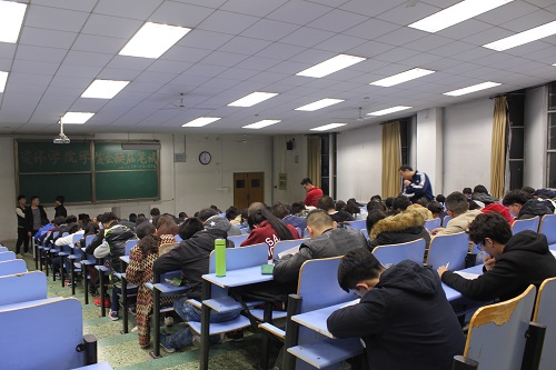 此次考试秩序井然,同学们旁若无人般纷纷埋头答题。而在考试中途,学院团总支书记张程老师也特地来访巡视。意外的是,在考试结束后,张程老师为留到考试结束的同学做了额外的一些讲解,通过对每道考试题目含义的分析解说,老师向同学们表述了他理想中的学生会以及他理想中会参加学生会的同学该有的样子,含蓄诙谐而又诚恳地激励了同学们去让自己变得更出色,老师的讲解十分简洁但还是迎来了同学们的掌声。至此,2016年资环学院学生会换届笔试结束,预祝同学们在此次和后续的选拔中获得更好的成绩!
