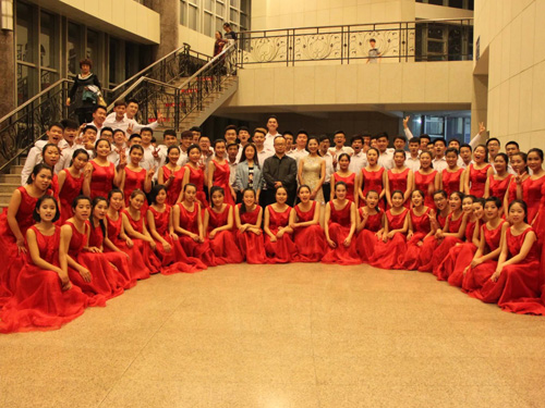 在持续一个多月的合唱紧张训练中,我院参加大合唱的80名同学做了充分的准备,以积极饱满的状态投入到本次大合唱比赛的训练中,大家从不熟悉歌曲,到牢记每一句歌词都付出大量的时间、精力、耐心,同学们每天上完课后,都要到音乐学院连续训练三到四个小时,牺牲了大量的学习和娱乐时间,而且还要克服嗓子疼痛以及训练疲劳等问题。同学们纷纷表示虽然连续的艰苦训练难免使人疲劳,有时感到枯燥无味,但每天听到自己的进步,听到大家越来越默契和谐的声音,心中感到更多的还是的成就感和快乐。同学们一同克服了种种困难,付出了辛勤的汗水,展现了我院学生不怕累,不怕吃苦,坚持不懈,自强自信的精神,比赛中,我院学生齐聚在舞台上,着装整齐,精神饱满,以高昂的热情,嘹亮的嗓音唱出了对学校的热爱对祖国的热爱,赢得了评委机现场观众的热烈掌声。