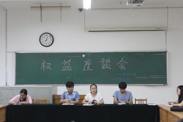 对于在校生来说,校园生活细节中处处透露着权益利害的关系。为了更好地集中,统筹处理同学生活中与自身权益有关的问题矛盾,资环学院在第十六届学生会里成立了权益部。2016年6月6日晚,为了进一步开展学生日常权益方面的相关工作,权益部于12号教学楼408室召开了第一届权益座谈会。