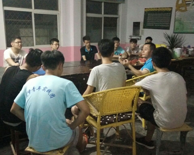 晚饭后,李栋祥副书记来到曹庄小学与筑梦青年们进行亲切座谈,李书记首先说到:“见到你们就像见到自己的孩子一样,倍感亲切呀!”,话音刚落,筑梦青年们对此报以热烈掌声;李书记接着说到:大学里能和班级同学一起做一次社会实践是一件非常有意义的事情,希望筑梦青年们能珍惜这次实践机会,在实践过程中多思考,多感悟、多记录,能够真正地锻炼自己,提升自己;座谈会在一片欢声笑语中结束。