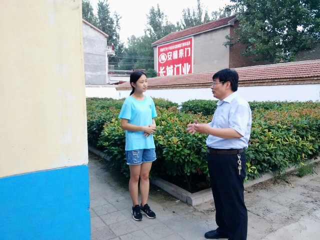 房晓军院长和张朝老师在筑梦青年的带领下先后参观曹庄小学的教室、操场并与在校学生亲切交谈,了解筑梦青年团对他们的教育关爱情况;随后,房院长与张老师又关切的问及筑梦青年们的饮食情况和住宿环境,张老师对筑梦青年们吃苦耐劳的精神加以赞扬并着重强调身在异乡的安全问题;最后,筑梦青年向房院长汇报前期实践活动进程和后期计划,房院长听后对筑梦青年团接下来的调研活动提出建议,房院长提到:“平时要多于学生交流,更多的了解学生情况,在调研中,要多收集数据,用数据说话。”