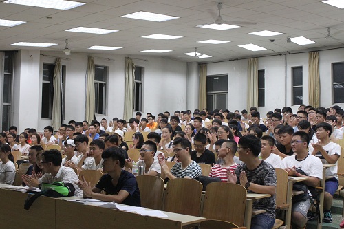 随后,苗涛又简明地对正式上课前的一些事宜做了说明,对于即将到来的军训,她强调要遵守军训纪律,尊重教官,严格服从教官的指示,以军人的要求来约束自己的言行。最后,苗涛把时间交给了各班的导航学长,他们一一上台做了自我介绍,随后,由各班导航学长将各班分别带到预先准备好的教室里,向大家详细介绍大学里的生活。