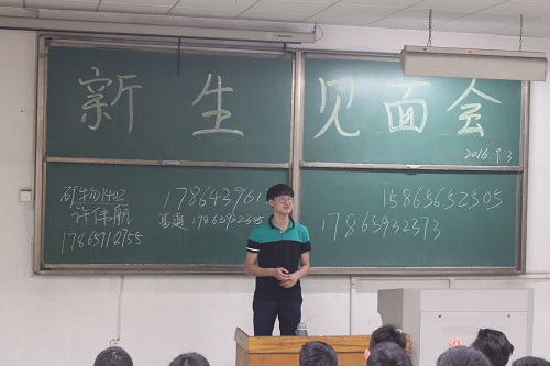 截至9月3日下午,我院16级新生报到顺利结束,晚上7点,在我校五号教学楼203、205室我院举行新生见面会,16级辅导员苗涛与16级的带班学长及学姐和新生们正式见面。
