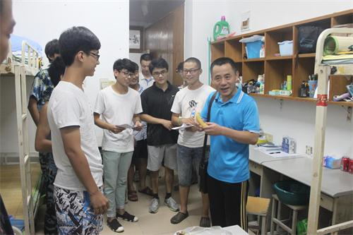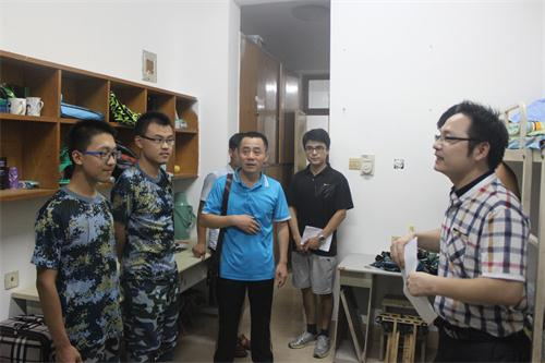 为了充分了解我院新生的到校生活情况,帮助他们尽快适应新的环境,9月4日晚,我院党总支书记陈俊德、党总支副书记李栋祥、团总支书记张程和16级新生辅导员苗涛以及16级的各班级导师参观了新生宿舍。