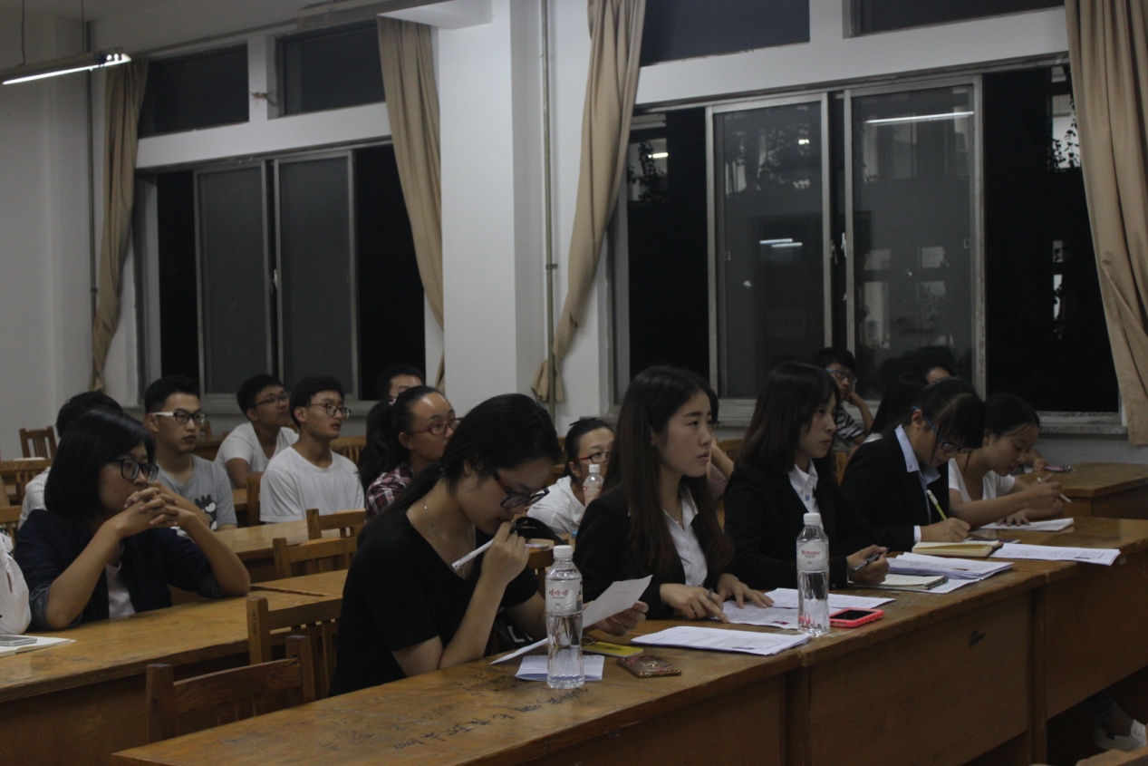 此次面试大致可分为三部分,首先是各部门负责人对新生宣读面试流程;其次由负责人点名让新生上台进行简单的自我介绍,并回答负责人提出的一系列问题;最后负责人总结面试过程,对面试之后的安排与新生说明,并答疑新生提出的问题。