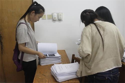 随后,各班团支书依抓阄的方式确定己班的具体检查任务,然后由素拓部的工作人员按照任务纸条上所写的对作业进行分配,团支书们依次领回各班需要检查的作业,随即将己班的暑期附件进行上传。最后,吴来伟再次强调,希望各班相关负责人能够真正负起责任,严格把关,不放过一份抄袭作业。