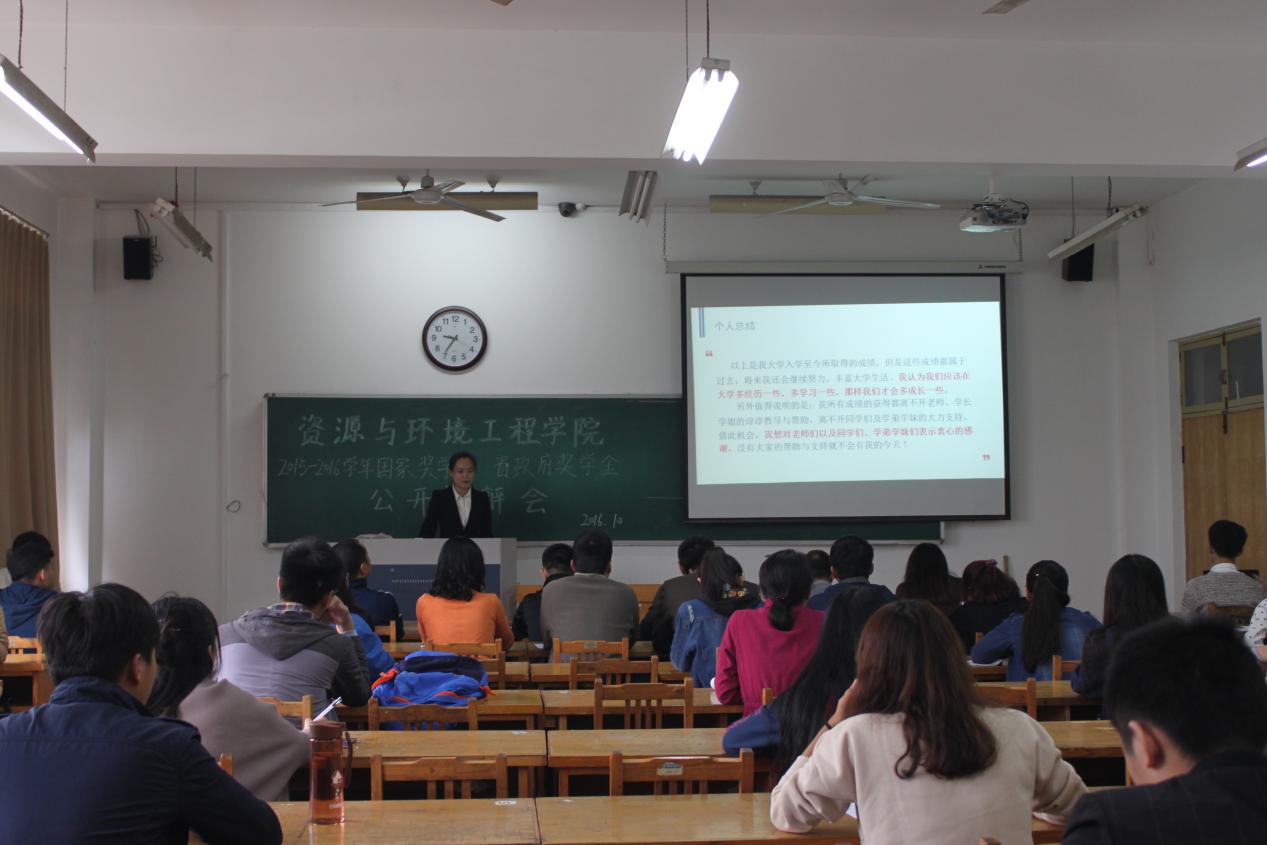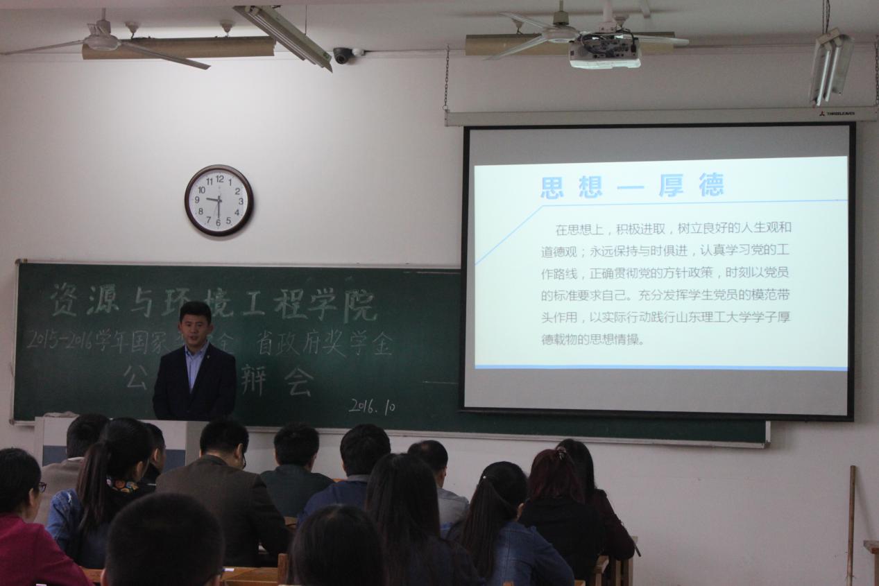 此次答辩会有国家奖学金候选人7人,省政府奖学金候选人3人。每位候选人结合自己的PPT从个人学习成绩、思想建设、学生工作、科技创新、社会实践等方面进行精彩陈述。出众的学习成绩、丰硕的科研成果、优异的竞赛成绩、丰富的实践经历,他们向评选委员展示出资环学院学子最优秀的一面。拥有各种荣誉的他们,在光荣的背后,更多的是不忘初心,满怀热忱的坚持。