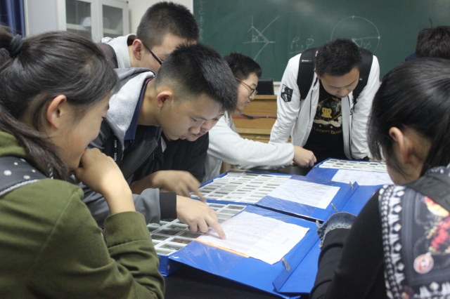 活动伊始,社团大一骨干组织会员们在13号教学楼南大厅集合,随后,在社团副会长崔艳昭的带领下,首先进入13号教学楼的109室。通过会长对实验室的一番简介后,会员们有秩序地对各类岩石进行参观。二十分钟后,副会长又召集会员去往12号楼324室,在去往的道路上有的会员就对自己的发现及感悟进行了分享与讨论。到达了324室,在社团会长对实验室须知进行简介之后,会员们都跃跃欲试地去从微观角度观察岩石,不时还在讨论和总结。二十分钟后,副会长对会员进行集合,活动结束。