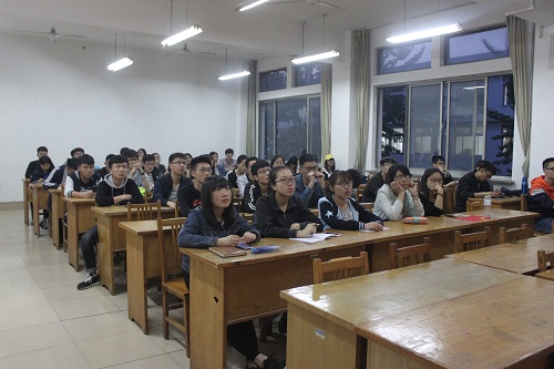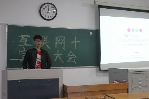 会议伊始,张永辉做了一个简短的自我介绍,之后他以一个未来科技的视频引出话题——“互联网+”。张永辉以滴滴打车为例子,详细的讲述了“互联网+”和“+互联网”的区别,着重介绍了第三届“互联网+”大赛的赛事背景,从什么是互联网+大赛、什么人可以参加互联网+大赛和参加互联网+大赛的要求三个方面深入详细地介绍了互联网+大赛。紧接着,他又把大赛的组别、赛事流程等进行简要介绍,他说,此次赛事一共分7种类别,参赛选手可以任选一个参赛。随后,他与在座的同学们一同观看了大学生创新创业大赛启动视频,让同学们对比赛有更为深入细致的了解。临近结束,他强调了策划书的撰写要求、答辩的注意要点和竞赛时间轴等问题,并鼓励同学们积极参赛。