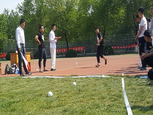 4月28日下午,我校2017春季运动会已进行到了尾声,但观众的热情依然不减,运动员们也没有丝毫懈怠。在第二体育场中央,学生男子甲组垒球掷远比赛正在如火如荼地进行着。我院运动员王秋生和王祥飞参加了比赛。