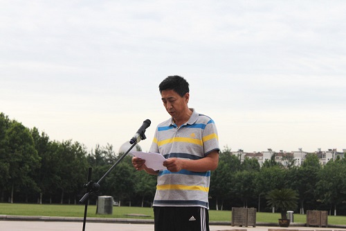 迎着初升的朝阳,升旗仪式正式开始。英姿飒爽的国旗班护旗队迈着整齐的步伐,缓缓护送五星红旗入场。嘹亮的国歌回响在耳旁,五星红旗冉冉升起,全体师生对国旗行注目礼。之后,学生代表葛文成进行国旗下演讲。他号召同学们紧跟社会正能量,树立社会主义核心价值观,努力做到“勤学,修得,明辨,笃行”,学会自我管理,培养良好习惯,力求全面发展,用自己的双手实现青春的理想和民族的梦想。