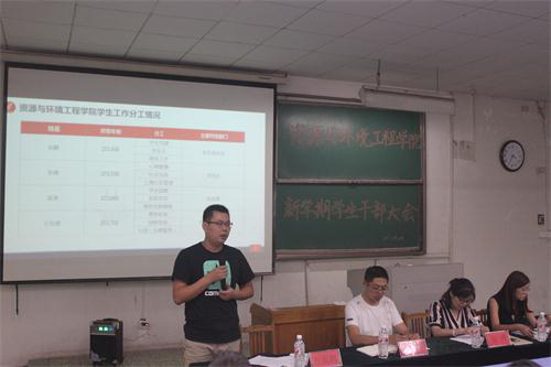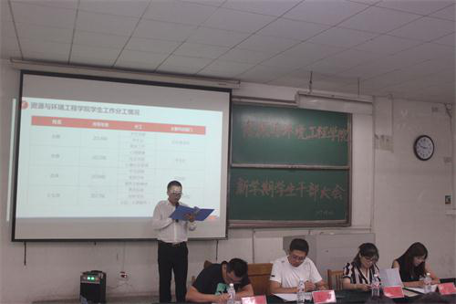 赵鹏也向同学们传达了我院党总支副书记李栋祥对大家的要求和期望。首先,紧扣“三点”:一是把握好时间节点,开学初工作头绪多任务重,要提前做好前期准备,在规定时间保质保量完成工作;二是抓住重点,工作中一定分清楚轻重缓急,不要眉毛胡子一把抓,把紧要和重要的工作放到前面并给予足够的重视;三是要知道难点,对班级中的情况尽可能的做到心中有数,班级中心理问题、学业问题、情感问题、家庭重大变故等特殊情况的同学应给予更多的关心和帮助,有问题及时向辅导员反馈。其次,狠抓“三力”:一是要有强大的执行力,要求各相关负责人紧卡时间节点,严格工作质量,未按时完成或出现重大工作失误的要进行问责;二是要形成合力,很多工作需要一起商量,群策群力,共同进步;三是要有创造力,鼓励大家充分发挥主观能动性思考如何才能把工作做得更好。最后,号召所有学生党员和学生干部队伍要有奉献,低年级同学向高年级学习,做好本年级本班级的相关工作,为深度建设具有家园情怀的资源学院而努力奋斗。之后,我院教学科科长于文刚对新学期伊始的教学工作进行简单部署,他要求,各学习委员要及时向班级同学传达教学科通知,认真核对课表,严格课堂考勤及二次考试纪律。