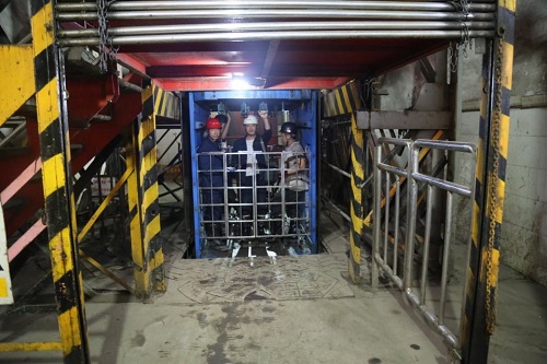 在抵达矿区的路上可见很多运矿石的大卡车,满载着从铁矿石向冶炼厂驶去,在几经波折、赶往矿区的同时,实践队员也在做着前往矿区开展调研的准备工作。在上午10时左右,实践队员抵达召口矿区,开展对矿区的深入调研访谈工作,召口矿的魏超很热情的接待了实践队员,在经过双方的协商后,魏超带领实践队员下井,进入井下310米,井下通风较好,温度在20℃左右,采矿工作井然有序的进行着。