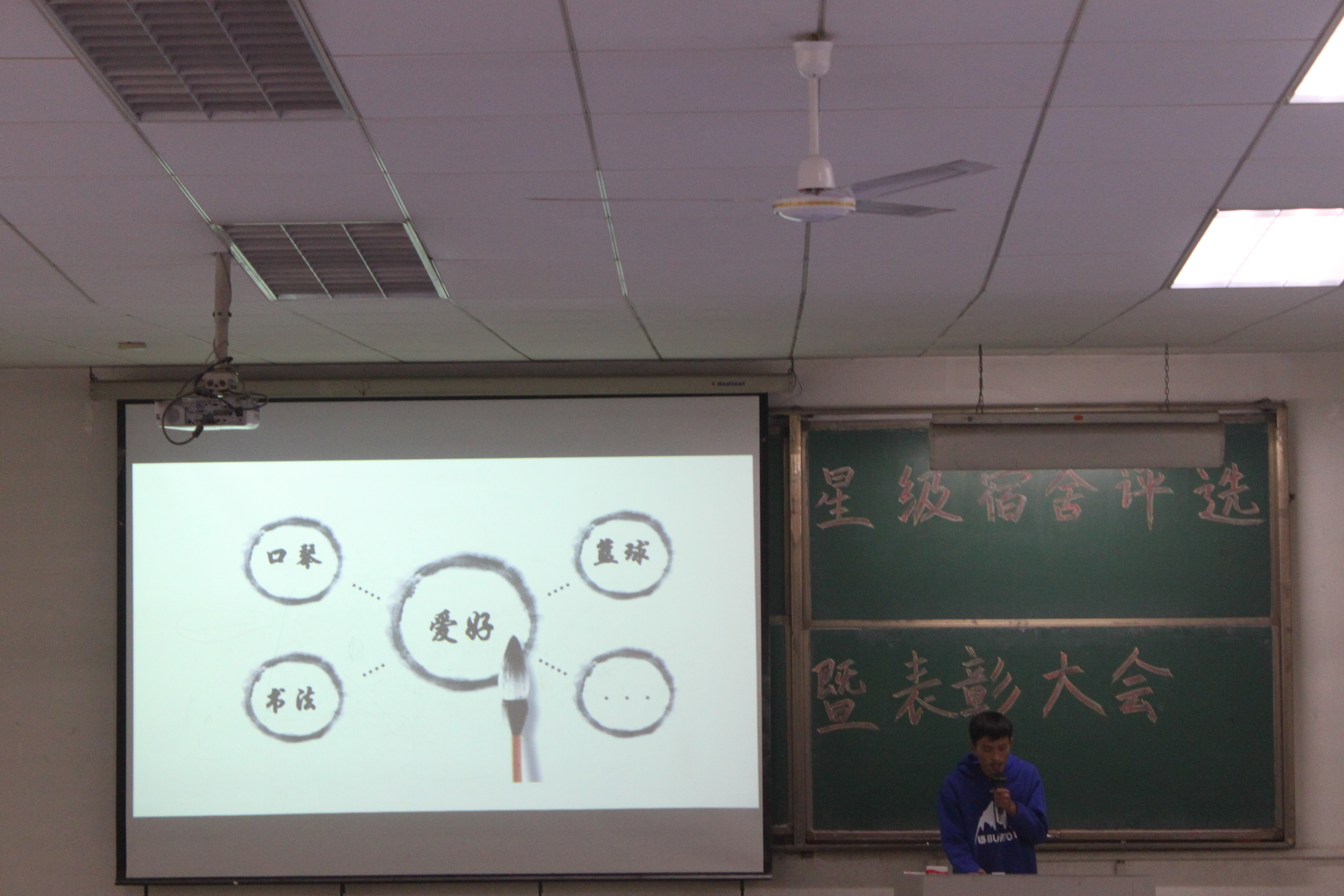 比赛伊始,主持人向大家介绍了比赛及评分规则:申报星级宿舍以记分形式进行评比,比分由报名表得分和PPT得分两部分组成,以最终得分评定星级宿舍。随后,各参赛宿舍代表利用生动形象的PPT向大家介绍自己的宿舍。各宿舍凭借宿舍成员优异的学习成绩、干净整齐的宿舍卫生、积极向上的业余活动追求赢得了阵阵掌声。“没有华丽的装饰,没有奢侈的摆设,但我们拥有一颗炽热的心,我们的宿舍永远是我们最温馨的小窝”,16H209宿舍发言人说道。经过评委团评审决定,14H218宿舍被评为“2017年资环学院五星级宿舍”,16H107等三个宿舍被评为“2017年资环学院三星级宿舍”,20H217等五个宿舍被评为“2017年资环学院一星级宿舍”。
