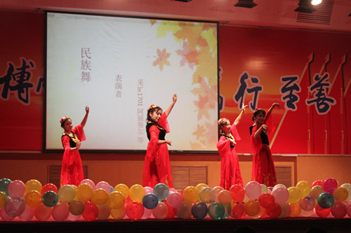 在接下来更精彩的“初遇”阶段,由采矿1702阿丽努尔等人带来的民族舞蹈让大家体味到了民族文化的风采,歌曲《消愁》、《那就这样吧》赢得大家阵阵掌声,小品《大学三个“一”》更是引起共鸣,让大家在欢笑中明白什么是我们应该追求的大学生活。