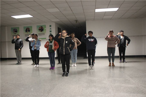 手语操培训11月1日开始,到今天为止,同学们已训练了半个多月的时间。每天晚上,参赛同学都要在晚自习过后前往12号教学楼进行训练,领队魏鲁鹏说,每次训练都会持续到很晚,有时一个动作要重复几十次才能练好,可即便如此,也没有人选择退赛。矿物1702班的罗锴因意外导致手部受伤,也没有放弃比赛,他说:“我喜欢这个比赛,我很想通过手语操去表达一种阳光积极的心态,无声胜有声嘛!”其他同学也是如此,刻苦的训练传达着大家积极乐观的信念与正能量,在训练期间,我院同学所表现出的“不怕苦,不怕累”的拼搏精神值得全体同学学习。