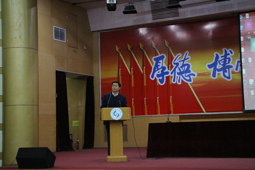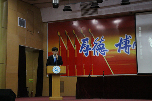 院长张照录上台讲话。他首先肯定了获奖学生及集体,并表示每一个荣誉的背后都是大家责任心、认真、努力的结果。紧接着,他从三个方面谈论了如何成为“五有”人才,首先要有健康的身心,身体是革命的本钱,要做好起步工作,在大学生活中积极参加文体活动,锻炼自己的身心健康;其次是加强实践,只有去做,才会知道自己知识及能力的不足,才能更有效的推动自己不断学习、不断进步;最后是担负起青年学生应有的个人、家庭、社会责任,要实现自己人生价值,为国家发展贡献自己的一份力量。他希望资环学院的每个学子都能向各位优秀学生学习,努力成为合格、优秀的“五有”人才。