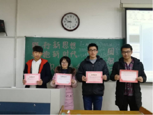 此外,学院部分团支部采取知识竞赛、有奖竞答等方式,以自学与集中学习相结合的方式组织团员深入学习十九大精神。各班级团支部以小组为单位,组内相互讨论学习,通过抢答等多种方式,不仅活跃了气氛,还使此番学习更具有趣味性,学习的更深刻。活动期间,学院团总支书记赵鹏,团总支老师苗涛、左安源也加入到各团支部中去,与大家一起学习、交流、讨论对十九大的理解与感悟。最后,各支部通过团员代表上台发言交流等形式,围绕学习情况、自我评价材料和日常表现情况,开展了团员评议工作。