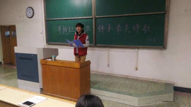 12月1日,矿物1602团支部在五教104教室组织开展了,“寻找红色之旅,传承最美诗歌”-我与毛主席的89首诗词诗歌沙龙会,进行内部学习交流分享,同学们在诗歌沙龙分享会上,分享毛主席的89首诗词,并挑选其中自己所认为的具有代表性的诗词,学习探究其中的红色故事,并以朗诵的形式表达出来。