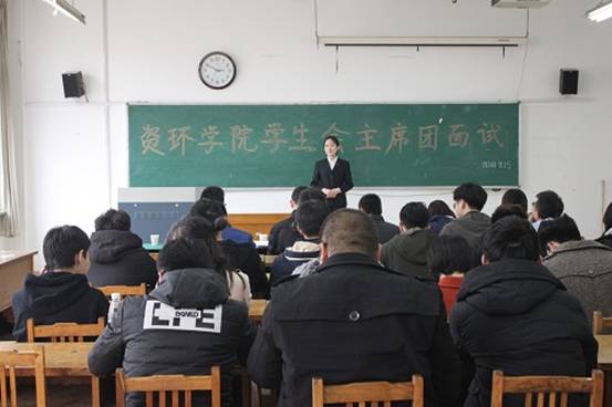 竞选伊始,由赵鹏详细介绍此次学生会主席团面试的流程,20位候选人在412教室等待竞选。竞选过程中,各竞选人依次阐述了自己对于所竞选职位的理解和进一步的打算,阐述完毕后,由评委进行提问,各竞选者按照自己的想法进行回答。随后评委团对于各竞选者的自我阐述以及日常能力等方面对其进行考察,综合笔试、面试成绩确定前十名候选人,再从其中择优选取七位作为主席团成员。经过评委的商讨,陈龙、刘晴等七人成功入选。