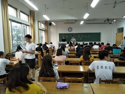 为了激发广大在校同学对传统文化了解的积极性,弘扬中华传统文化,拓展大学生国学知识储备,激发大学生对国学经典的热爱,提升他们对传统文化的自信心和自豪感。5月18日晚,资环学院科创部在12号教学楼412教室举行国学经典知识比赛,资环学院通过自主报名的学生参加了此次比赛,学院科创部全体 成员监考。