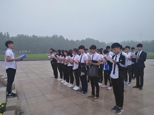 为让青年学生深入学习贯彻十九大精神,提高责任感与使命感,践行社会主义核心价值观。6月11日上午,资环学院于鸿远楼前开展“学习贯彻十九大,勇争新时代先锋”主题活动。学院党总支书记陈俊德、党总支副书记李栋祥、全体辅导员和16、17级全体学生参加,深入学习贯彻党的十九大的精神。