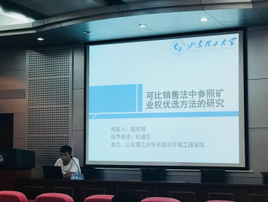 年会期间还组织了第一届矿业工程领域研究生论坛,共有12所高校的研究生代表作了21场学术报告,我院初道忠副教授指导的研究生赵忠琦应邀作了《可比销售法中参照矿业权优选方法的研究》并与参会研究生代表进行了深入交流。
