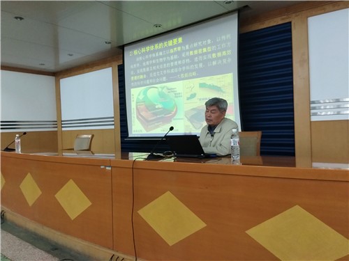 报告会以“地质科学大数据的及其应用”为背景展开。首先,吴冲龙解释什么是地质科学大数据及其特征,进而阐述地质科学大数据与智慧地矿的关系。随后吴冲龙教授强调了大数据技术对地质调查的重要性,并且介绍了大数据核心科学体系以及它的起源。吴冲龙讲到:“大数据的产生和应用不会取代地质工作者的工作,在工作中,大数据是地质研究的重要工具!”紧接着,吴冲龙向大家讲解核心科学体系的关键要素:核心科学体系是以数据密集型的工作方式,实现数据及相关信息的管理和存档,进而实现数据高效快捷的融合。他表示,这种科学体系的转变不仅适应我国地质工作转型的发展趋势,同时也适应世界地质工作的发展趋势。最后吴冲龙教授总结前面的讲授,提出“玻璃地球”理论,这是一种利用大数据技术让资源,地质,环境可视化的虚拟浅层地壳。吴冲龙教授展望该技术的发展前景和它所面临的困难,并向大家详细介绍。
