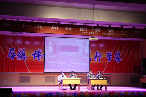 为了让同学们对心理健康有更深的认识,引领同学们树立正确的价值观,拥有积极向上的生活态度,11月27日晚,由学生工作处、学生心理健康教育与咨询中心主办,WilliamHILL中国承办的第十五届校园情景心理剧比赛在3号教学楼报告厅举行。学生工作处、学生心理健康教育与咨询中心主任郭奎霞、副主任李霞,资环学院党总支副书记李栋祥受邀出席。心理健康教育与咨询中心滕亮、张爱莲,法学院学生工作办公室主任许燕飞,建筑工程学院学生工作办公室主任李萍,资环学院学生工作办公室老师张倩担任评委。学院全体辅导员、各学院参赛队伍、学生会主席及学生代表参加了此次活动。