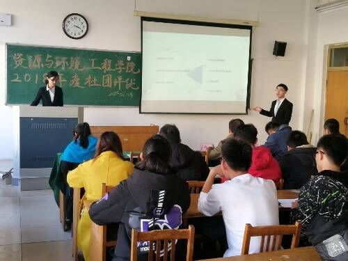 为总结本学年社团活动的开展情况, 12月13日下午,资环学院在12号教学楼408教室举行了2018年度社团评优答辩会。学院党总支副书记李栋祥,团总支老师左安源,各社团专业指导老师以及学院各社团代表参加。